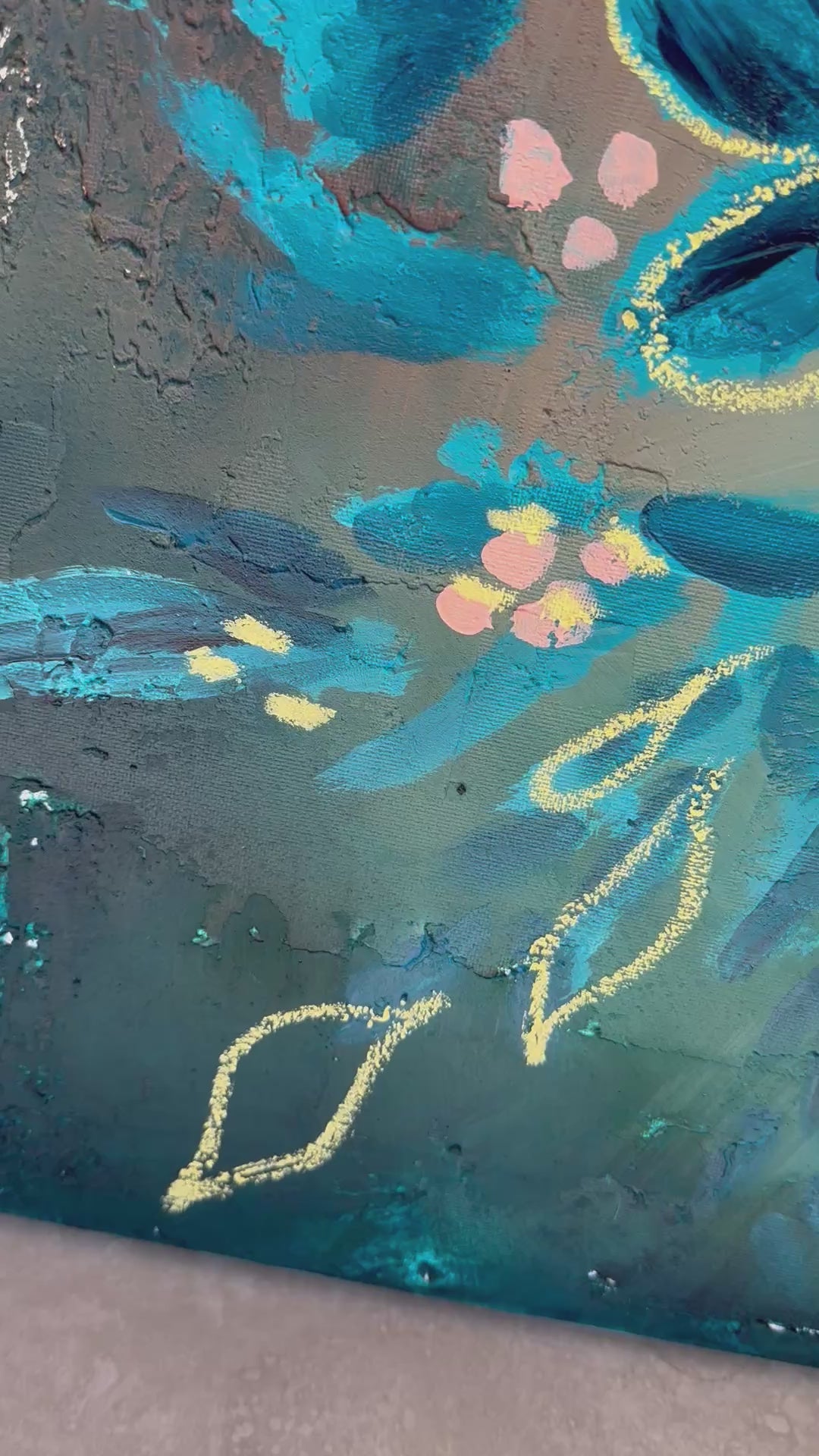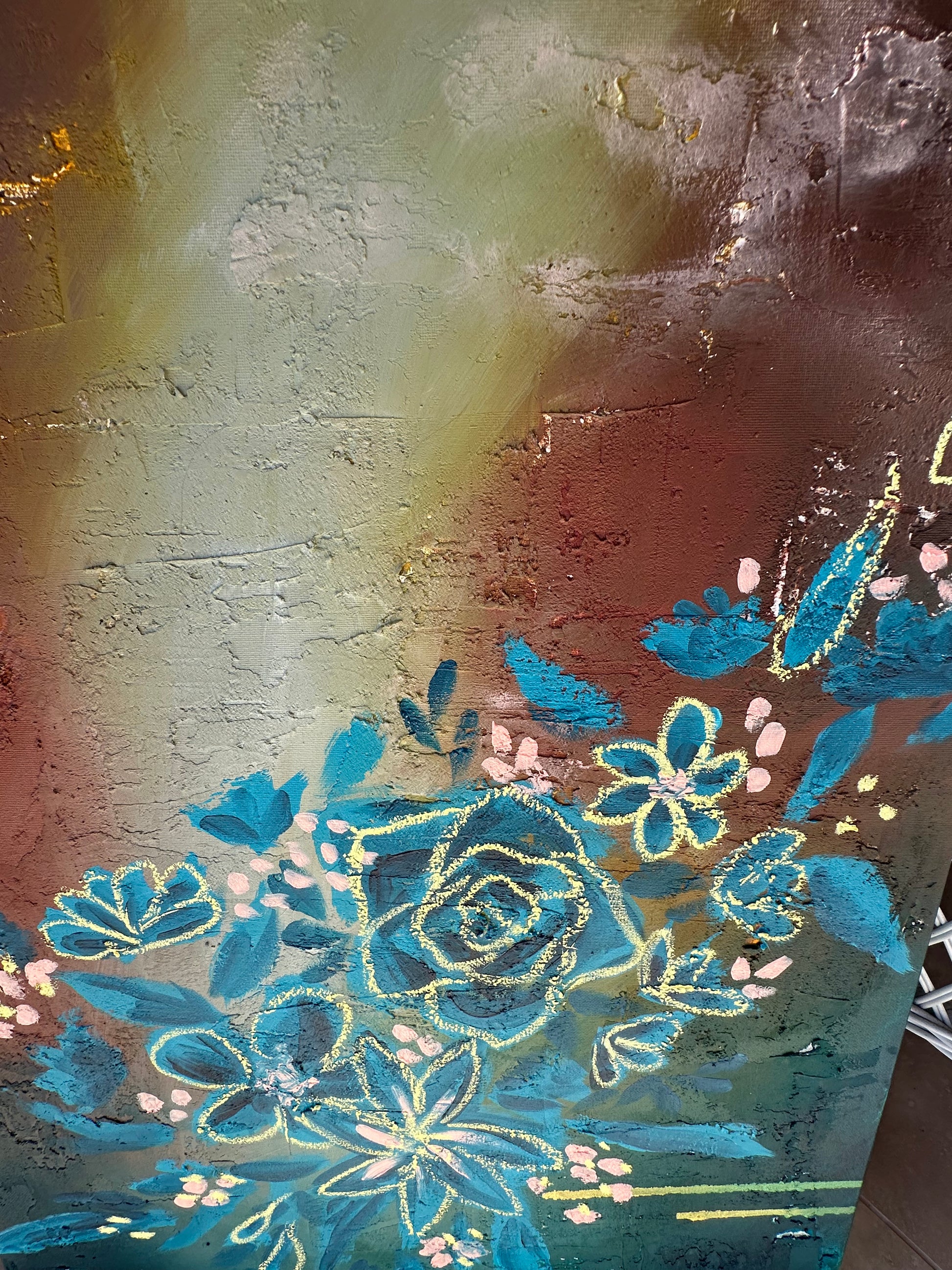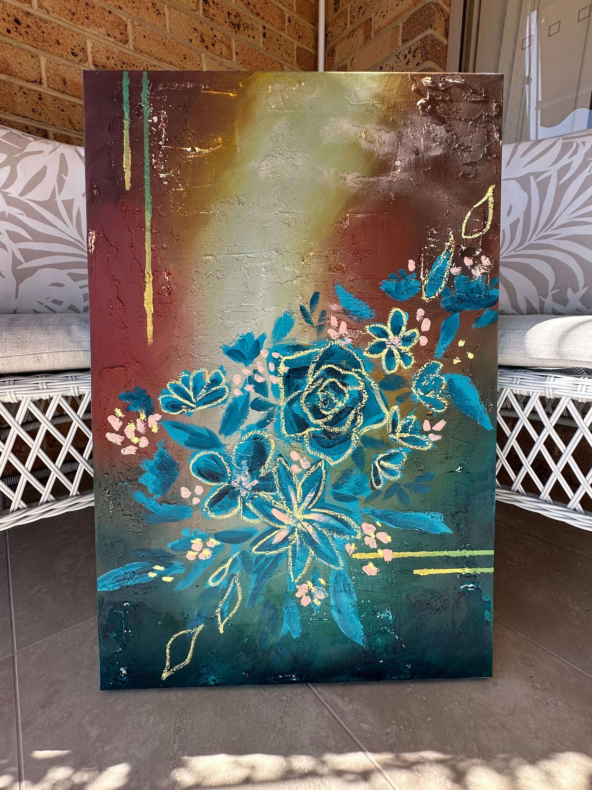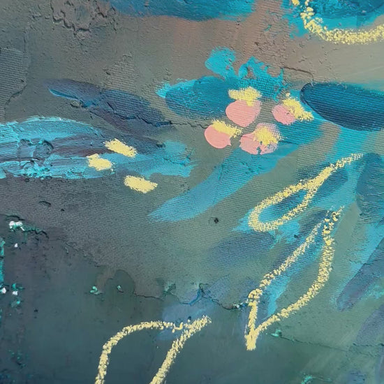 Tranquil Wildflowers is a beautiful regal and calming blend of colours in addition to the texture, this painting makes for the perfect dramatic flare in any room. I used a variety of mediums to create this work.